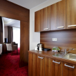 Ubytovanie v dvojlôžkových a jednolôžkových izbách. Izby sú vybavené kúpeľnou so sprchovacím kútom alebo vaňou, WC, TV, rádiobudíkom, chladničkou, telefónom a pripojením na internet pomocou pevnej prípojky. Pobyt so zvieraťom nie je zo zdravotných dôvodov v kúpeľoch možný. Dependance nie je s hlavným hotelom spojený chodbou a na stravu, procedúry a do AQUA-VITAL Parku je potrebné dochádzať približne 150 m.